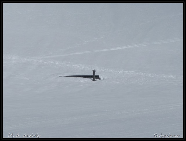 Menudo nevadon lo que se ve de la cabaña metálica, en el paso del oso