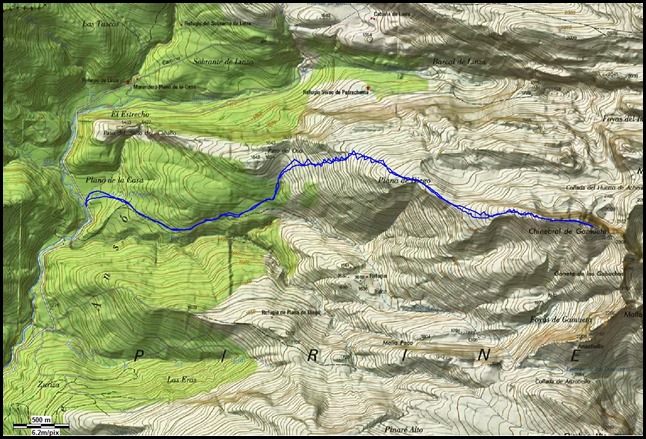 La bajada la hacemos por el mismo camino, y la verdad que los cuatro disfrutamos un montón, habrá que repetir y volver para bajar por la pala sur. Mapa del recorrido