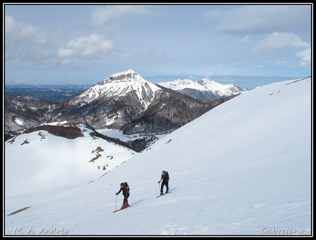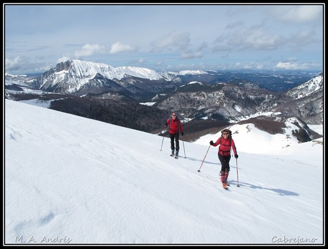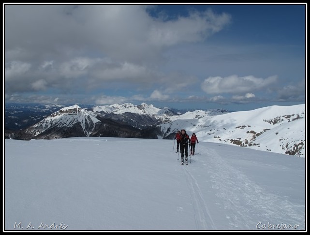 En febrero realice un cursillo de esquí y el sábado quedamos parte del grupo, para poner en practica lo aprendido. El objetivo elegido el Chinebral de Gamueta desde la fuente de los Clérigos. Nos salió un gran día en cuanto a nieve, con un par de dedos de nieve recién caída, aunque las nubes fueron cubriendo todo por momentos, aguanto bien y en la bajada tuvimos buena visibilidad y fue una gozada.