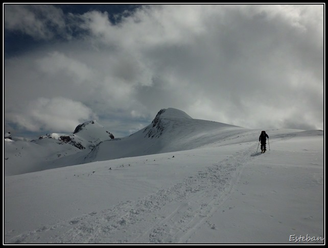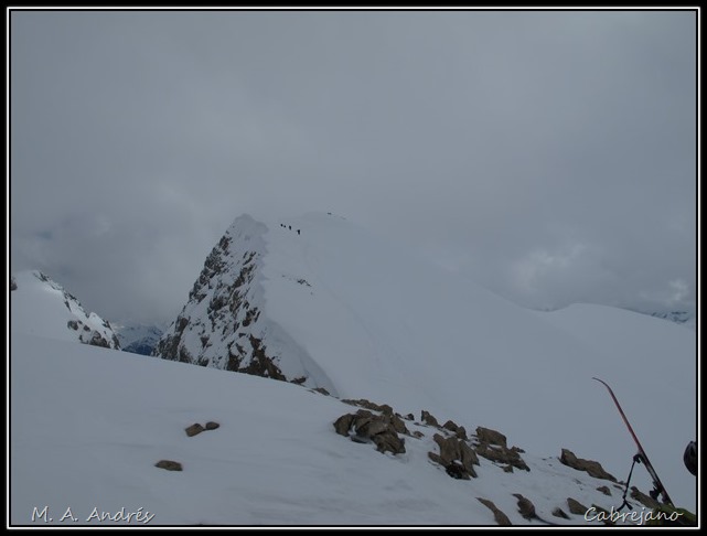 Llegamos a esta primera antecima, aquí se quedan Cristina y Alberto, Esteban y yo continuamos. Llegamos a la cima y tenemos poca visibilidad, aunque luego va abriendo